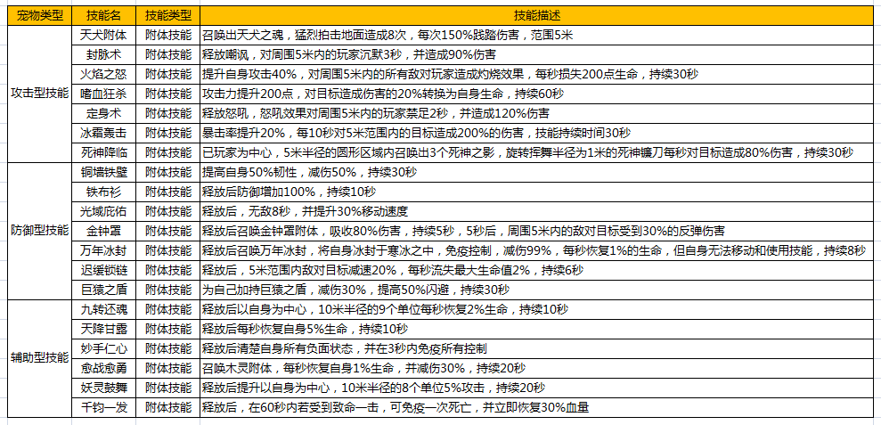宠物技能
