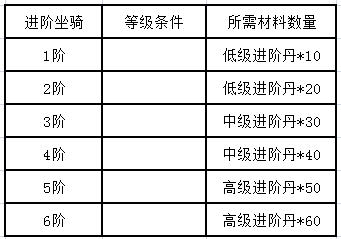 3.进阶条件:坐骑达到相应等级,满足升级所需材料。