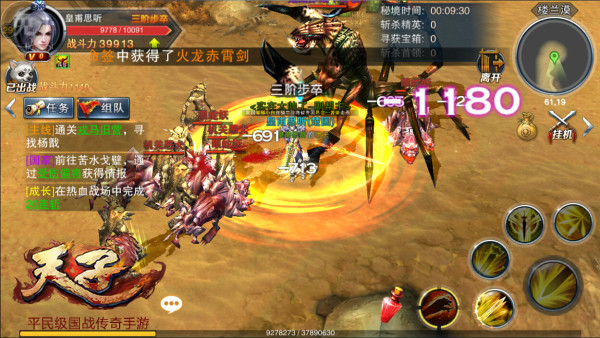 《天子》手游是一款根植于端游经典玩法的平民级国战传奇手游,游戏采用先进的U3D引擎技术,以端游级4K超清画面、3D场景动态实时反射、真实物理碰撞及爽快的打击感等为特色,实现手机上的百人同屏炫丽国战。《天子》手游首创角色离线玩法,并加入全视野开放式大地图,让玩家可以永不离线,尽情PK,自由战斗,开创动作国战手游的新时代。