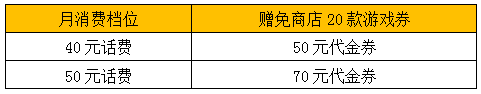 使用免卡月消费达到一定金额,即可免费获得免商店代金券,支持20款游戏,随您畅玩!