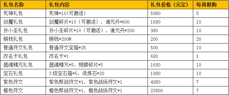 活动内容:迎江山美人新版本活动期间,将士们可在游戏中“商城”面板购买海量仙品礼包,珍馐美味盛大开售啦,稀有极品仙宠死神、万剑齐发剑魔、巨灵、女娲石、伏羲木、一级宝石箱、海量道元丹等海量豪华礼品应有尽有,将士们快来参加吧~