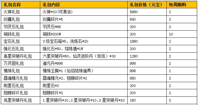 五月特惠礼包2:1980元宝=小恶魔碎片*10(可激活)、附星石*10、羽灵石*99