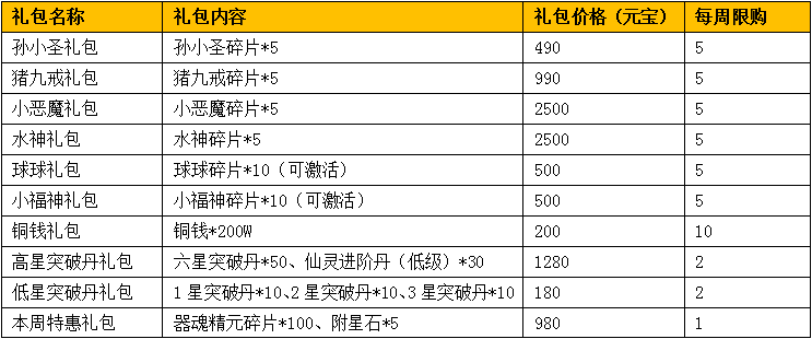 活 动内容:仙灵齐聚助神将,万千礼包送祝福。将士们可在游戏中“商城”面板购买海量仙品礼包,大闹天宫孙小圣、天蓬降临猪九戒(拥有两种形态成长变化和能将 敌人变猪的控制大招)、极品仙灵小恶魔、冰封千丈水神、器魂精元、海量铜钱、附星石,助你翱翔天际自逍遥,六星突破丹、进阶丹助力万灵成长结八阵等海量豪 华礼品应有尽有,将士们快来参加吧~