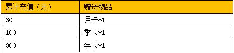 1、活动期间,多日累积充值达到对应金额即可领取对应超值福利卡。两日累积充值满300元,即可领取月卡、季卡、年卡各一张。