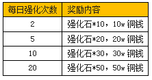 活动内容:每日强化达到指定的次数,即可在活动面板领取对应奖励