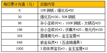 活动内容:每日累计充值达到指定金额,即可在活动面板领取相应的奖励