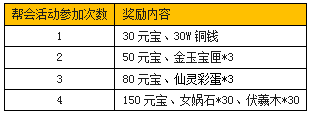 活动内容:参加帮会活动次数达到相应次数,即可在活动面板领取对应的奖励
