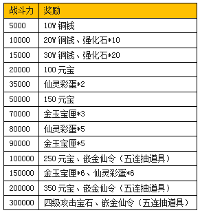 活动内容:战斗力达到相应条件,即可领取对应奖励,每个档次只可领取一次。