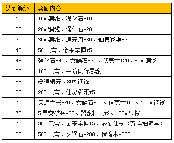 活动内容:开服后,玩家达到指定等级,即可在活动面板领取对应奖励