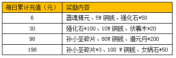 活动内容:每日累计充值达到指定金额,即可在活动面板领取相应的奖励