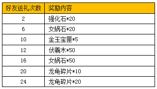 活动内容:累计参加好友送礼活动达到相应次数,即可在活动面板领取对应奖励