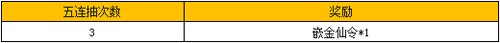 活动六、累计五连抽 得嵌金仙令