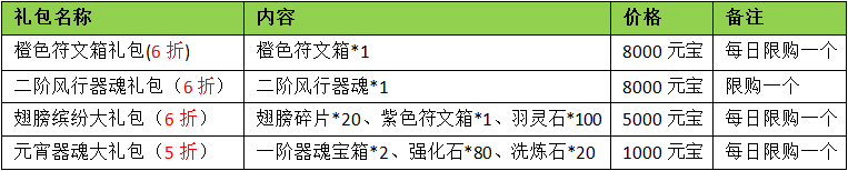 活动内容:元宵节活动期间,将士们可在游戏中“商城”面板购买限时橙色符文箱礼包、二阶风行(鞋子)器魂礼包、翅膀缤纷大礼包、元宵器魂大礼包,橙色符文、二阶器魂、翅膀碎片、一阶器魂等超稀有豪华礼品应有尽有,打折出售,限时购买,将士们快来购买吧~