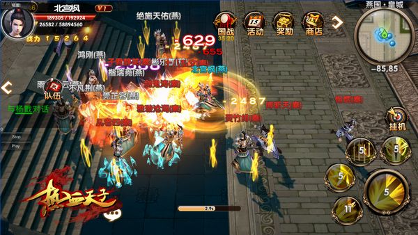 国战手游最大的特点在于战争场面的紧张与刺激,《天子》手游对战争中场面和人物的刻画都显示出了对游戏的深度理解和高 超的绘画水准。由于《天子》手游讲述的是问鼎天子的战争,所以战斗中的人物多呈现阳刚雄浑的美感。既有大场面的描绘, 又有战斗细节的刻画,让玩家身临其境,感受热血国战的非凡魅力。