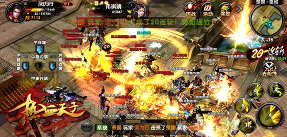 《天子》手游以百人国战为游戏亮点,融策略动作于一体,成为游戏重点推荐的玩法之一。在画面上,《天子》手游既能表现国战前的静态场景,包括排兵布阵、蓄势待发等,也能表现实际战斗时的震撼场面,军旗的飘扬,坐骑的奔腾、将士的呐喊、硝烟的弥漫,都再现了两军对垒的壮观景况。无需花费时间在端游中寻找国战快感,也没有必要观看国战题材的电影视频,玩家直接可以在《天子》手游手游中随时随地体验碎屏级的国战盛宴。