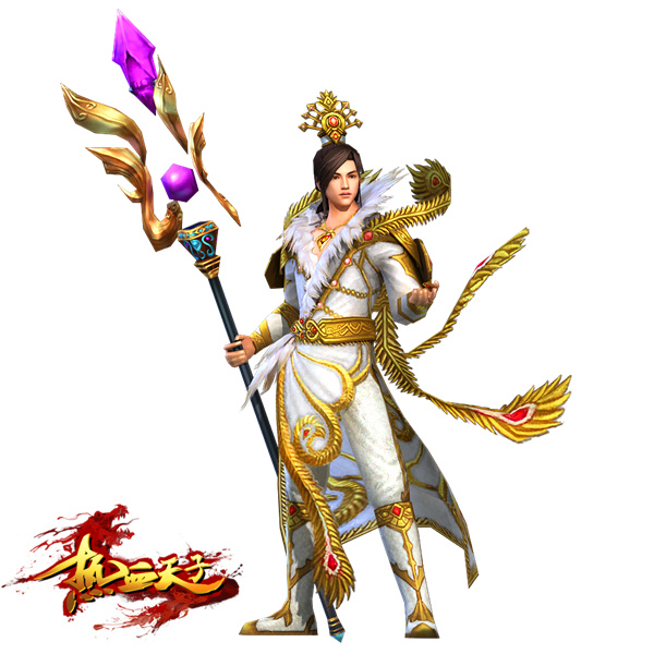 太清作为朱雀门下的法师,自然不需要长枪和宝剑这样的冷兵器,不过法师的标配法杖肯定是不能少的。太清的法杖非常华丽,以亮色为主,主要表现朱雀擅长的控火能力。预计后期太清还会出现主要体现控冰能力的形象,总体说来,太清的玩法非常多样化,其技能的释放也是三大职业中最绚丽的。同样,不要以为法师就是女性的专利,男性太清同样充满了华贵之气。