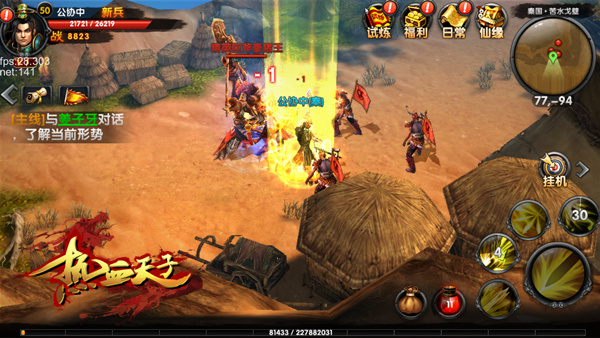 《天子》手游是一款根植于端游经典玩法的平民级国战传奇手游,游戏采用先进的U3D引擎技术,以端游级4K超清画面、3D场景动态实时反射、真实物理碰撞 及爽快的打击感等为特色,实现手机上的百人同屏炫丽国战。《天子》手游首创角色离线玩法,并加入全视野开放式大地图,让玩家可以永不离线,尽情PK,自由 战斗,开创动作国战手游的新时代。