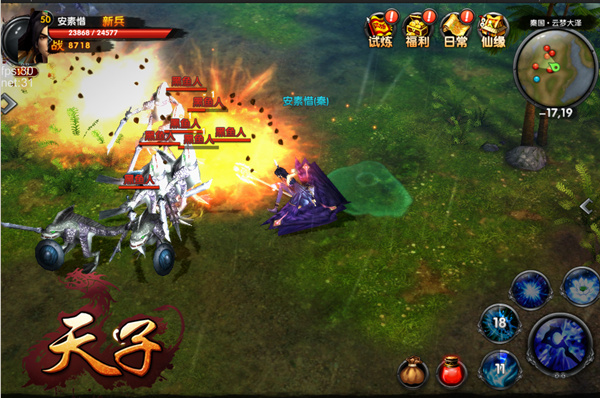 关于《天子》手游:《天子》手游是一款根植于端游经典玩法的平民级第一国战手游,游戏采用先进的U3D引擎技术,以端游级4K超清画面、3D场景动态实时反射、真实物理碰撞及爽快的打击感等为特色,实现手机上的百人同屏炫丽国战。《天子》手游首创角色离线玩法,并加入全视野开放式大地图,让玩家可以永不离线,尽情PK,自由战斗,开创动作国战手游的新时代。
