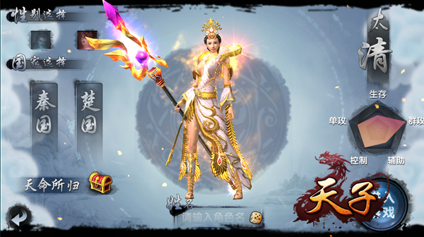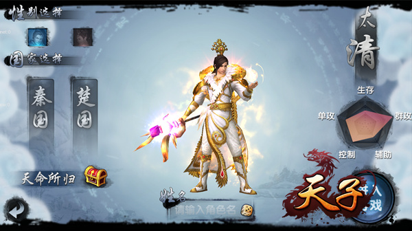 《天子》手游中的职业太清,很多玩家听到这个名字的时候就会本能地将之想象为一个女性形象。确实,太清修习道家法术,擅长冰火自然之力,又是远程战斗方式,非常适合女性角色。不过作为一个职业,男性太清同样是一群强力的法师,华丽的造型、炫酷的技能,首测虽然还开启,就已经让很多玩家选定了太清这个职业。