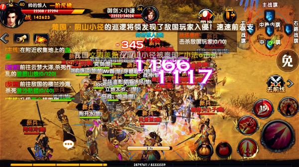 国战类手游,国战玩法的好坏直接决定了一款游戏的品质。小编在观看了宣传视频,就十分期待里面的千人同屏国战玩法。进入游戏后,小编迫不及待的以最快的速度升级,配装苦练操作,终于拿到了国战的“门票”。每天晚上八点开启千人国战,等待了一天的小伙伴们都在第一时间饥渴难耐地涌入皇城,想要享受一番全歼敌国的荣誉感。小编我差点就没挤进去,小编选择了秦国。国战开场后,玩家开始组织,左路,中路和右路集结。包团往前推进,各种技能,各种肉搏,加上振奋人心的呐喊声,小编我都感觉自己手都在激动的不停发抖。