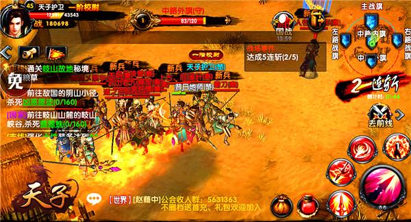 《天子》手游是一款根植于端游经典玩法的平民级第一国战手游,游戏采用先进的U3D引擎技术,以端游级4K超清画面、3D场景动态实时反射、真实物理碰撞及爽快的打击感等为特色,实现手机上的百人同屏炫丽国战。《天子》手游首创角色离线玩法,并加入全视野开放式大地图,让玩家可以永不离线,尽情PK,自由战斗,开创动作国战手游的新时代。