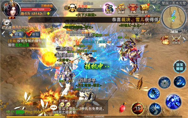 《天子》手游拥有真正的百名玩家同屏PK技术,同时在野外也可任意PK(笔者已阵亡数次),真正还原了当年那国战PK烽火连绵的盛景,基于手游玩法全新设计的帮会与国家系统,搭配真正适合手游的操作方式,带来了媲美PC却又完全不同的全新国战体验。同时基于《天子》手游的“平民国战动作手游”的定位,玩家在战场上不单单只要一身好装备(通过熔铸好装备也很容易入手),更需要风骚的操作和高超的意识,国战开始后,对战双方的玩家在一瞬间涌入战场,满屏的角色都让人仿佛回到了那个热闹喧嚣、斗智斗谋,拼血拼蓝,满屏掉装备的热血时代。
