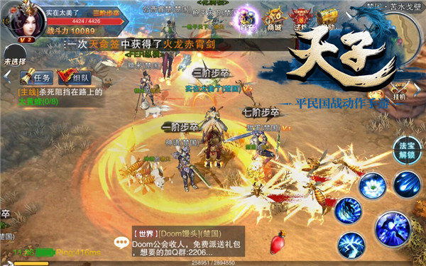 《天子》手游作为一款动作国战手游,玩家在其中体验到的不是一种华而不实的虚假战斗,而是真实逼真的打击感、疼痛感。此前,由蜗牛的首创浮空打斗,革新了动作游戏的打斗方式。《天子》手游则延续了这种动作游戏精华,将其运用在更为波澜壮阔的热血国战中,创造了动作国战手游在打击感上的新纪元。同时在根植于国战玩法与动作操控的游戏特征的同时,《天子》手游更摒弃了传统游戏无限刷副本的单一模式,而是采取端游式的全视野大地图玩法,让玩家可以自由开放地在地图上探索,从而在手机上实现大型网游才有的游戏场面。同时考虑到手游玩家的游戏特征,《天子》手游更创造性地在手游中植入角色离线玩法,提供给玩家永不离线体验热血国战的机会,随时随地都能升级、打怪、做任务。最大化地保证玩家在游戏中的,让玩家在工作学习之余依然能够享受到游戏的乐趣。