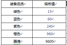 · 熔炼装备获得熔炼值