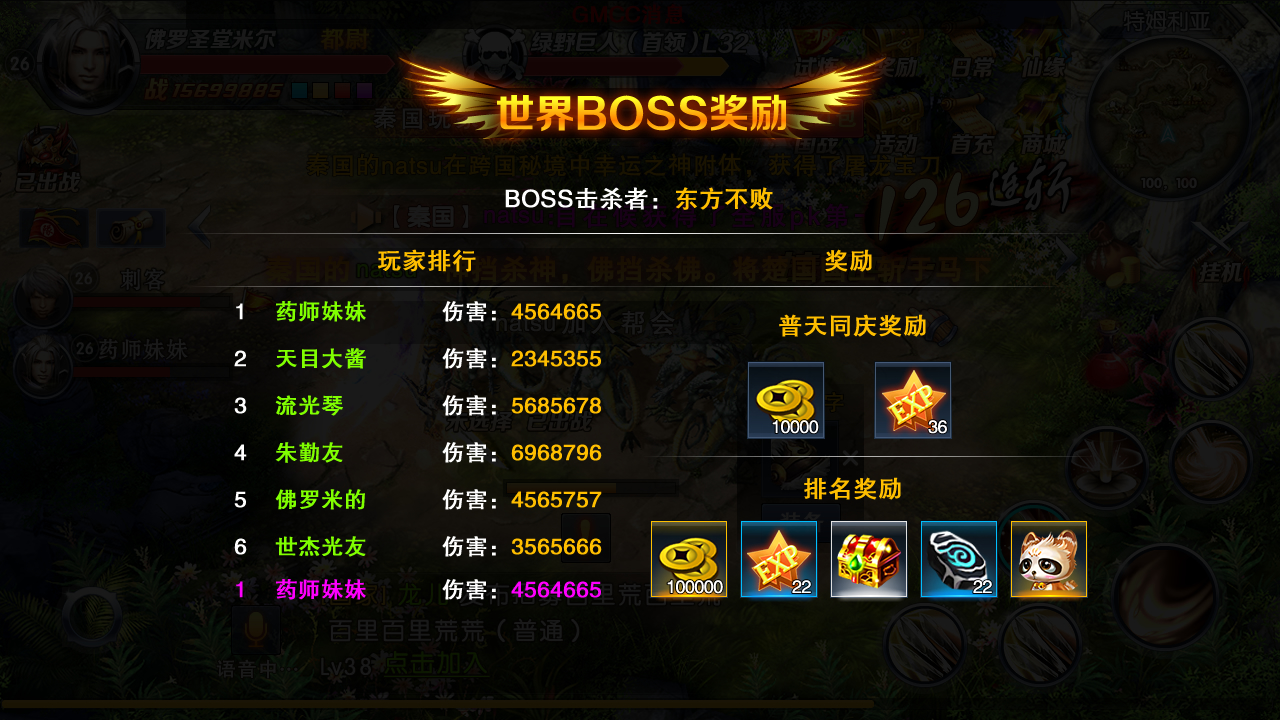 根据玩家的伤害排行获得的奖励不同,达到一定条件可以进行抽奖
